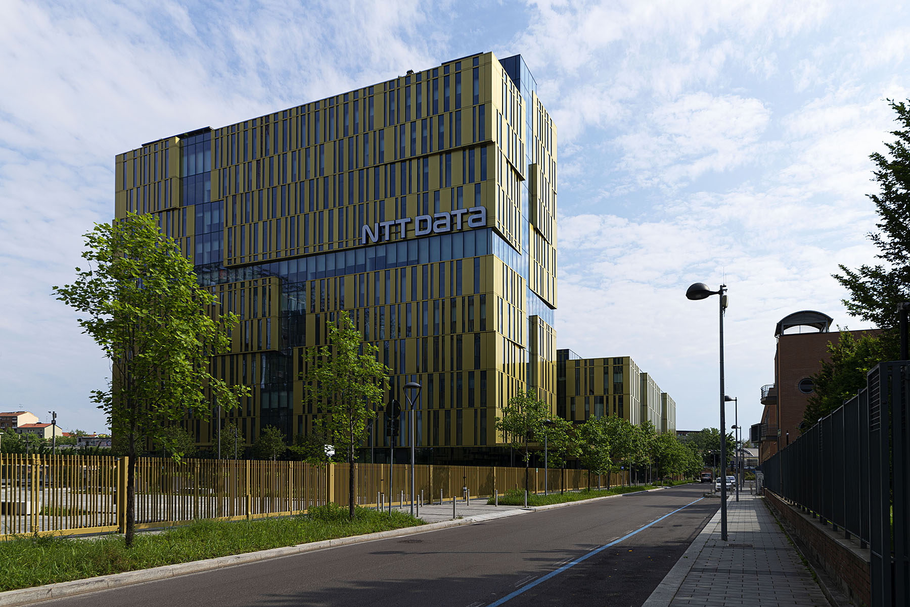 La struttura della NTT DATA è ben ripresa e le sue geometrie ben rese.