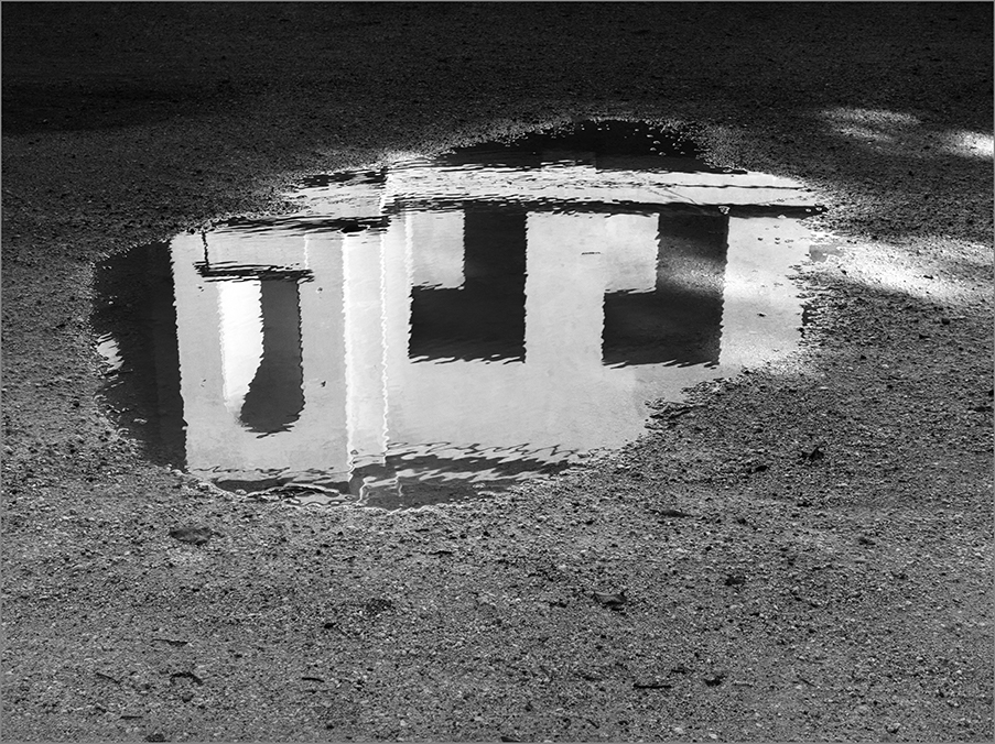 Il tuo occhio sempre attento ha saputo cogliere questo interessante minimal in una pozza d'acqua.Immagine molto suggestiva,ottimo anche il bn. Ciao,Sergio.