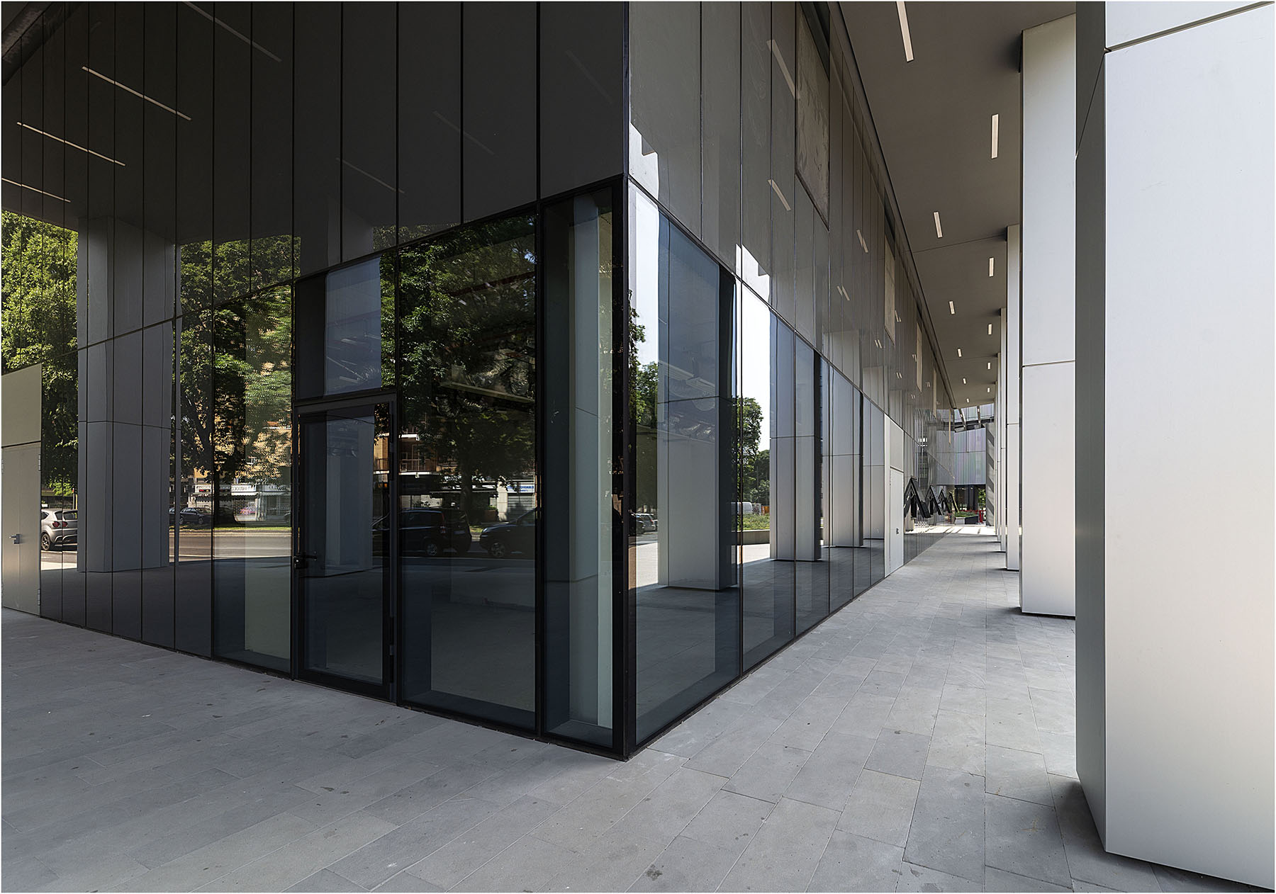 Le vetrate sembrano dilatare lo spazio aggiungendo profondità.