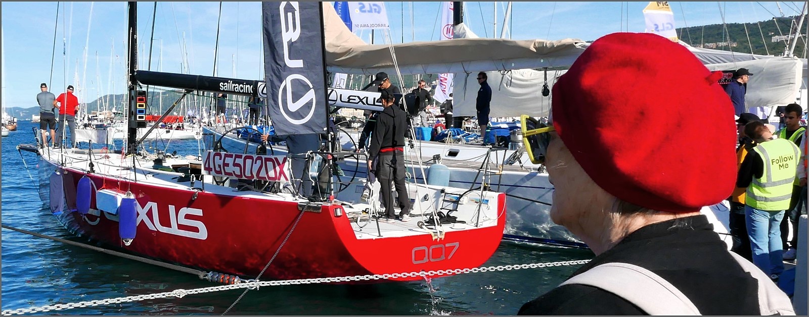 Ottimo l'accostamento cromatico tra maglia del navigante, scafo e berretto della signora.