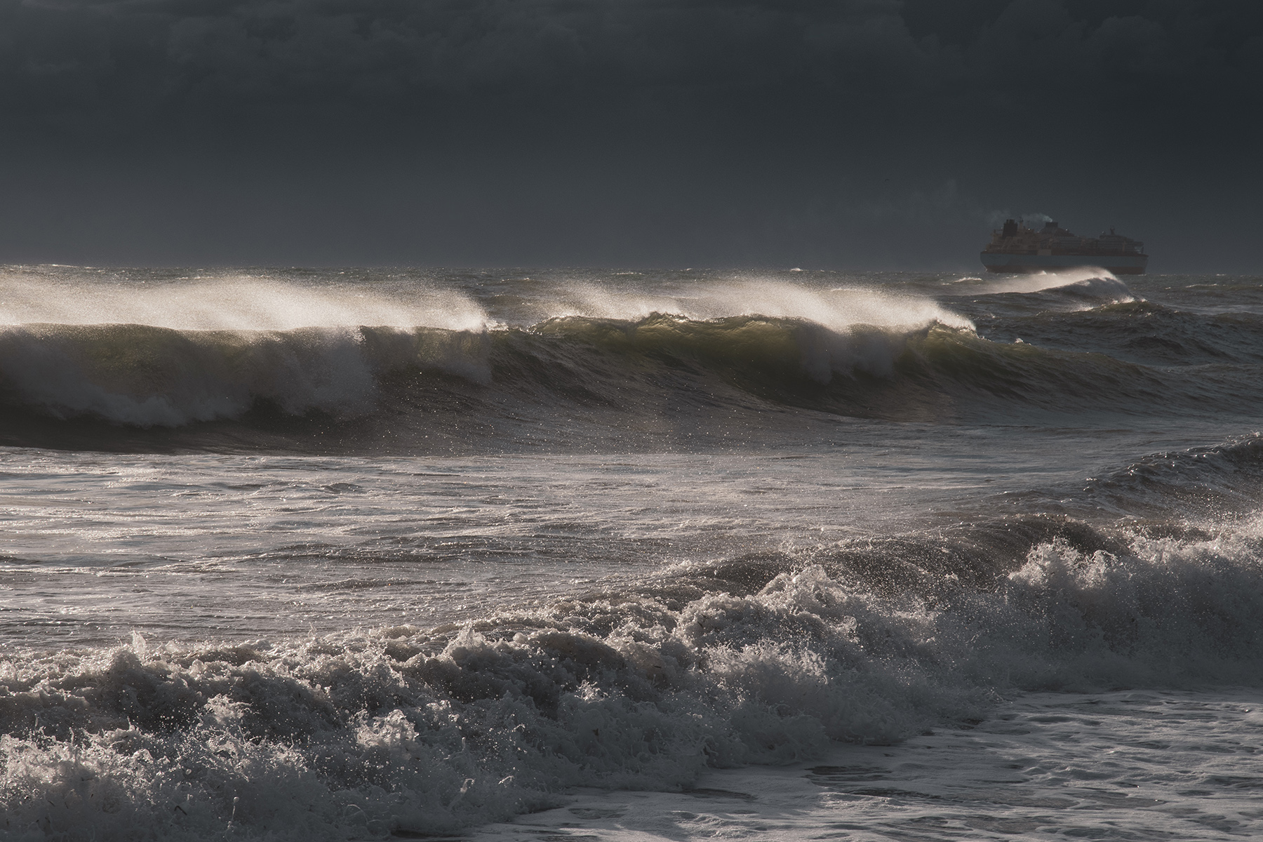 Qui la nave fa capire le dimensiini di tutto rispetto delle onde.