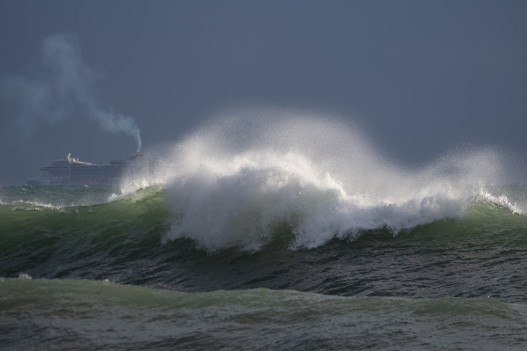 Molto ben riuscita anche questa fotografia. L'ondona davandi dà il suo spettacolo, dietro il quale si scorge la grande nave che passa impassibile con il fumo degli scarichi del motore che la spinge. Ottima! Ciao, Francesco _________________ Fotocamere Olympus OMD e PEN, Panasonic G3. Software GIMP