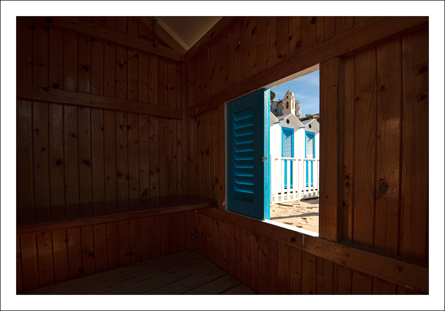 Bella la linea del colmo della cabina che si prolunga con il campanile, la breve vita di una stagione balneare che si unisce alla stagione secolare della torre campanaria . Sono strettamente connesse tra loro,così come la vita degli abitanti del luogo ...e del Fotografo Smile