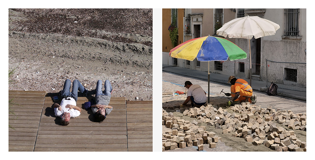 Riposarsi al sole e lavorare all'ombra. Buon dittico.