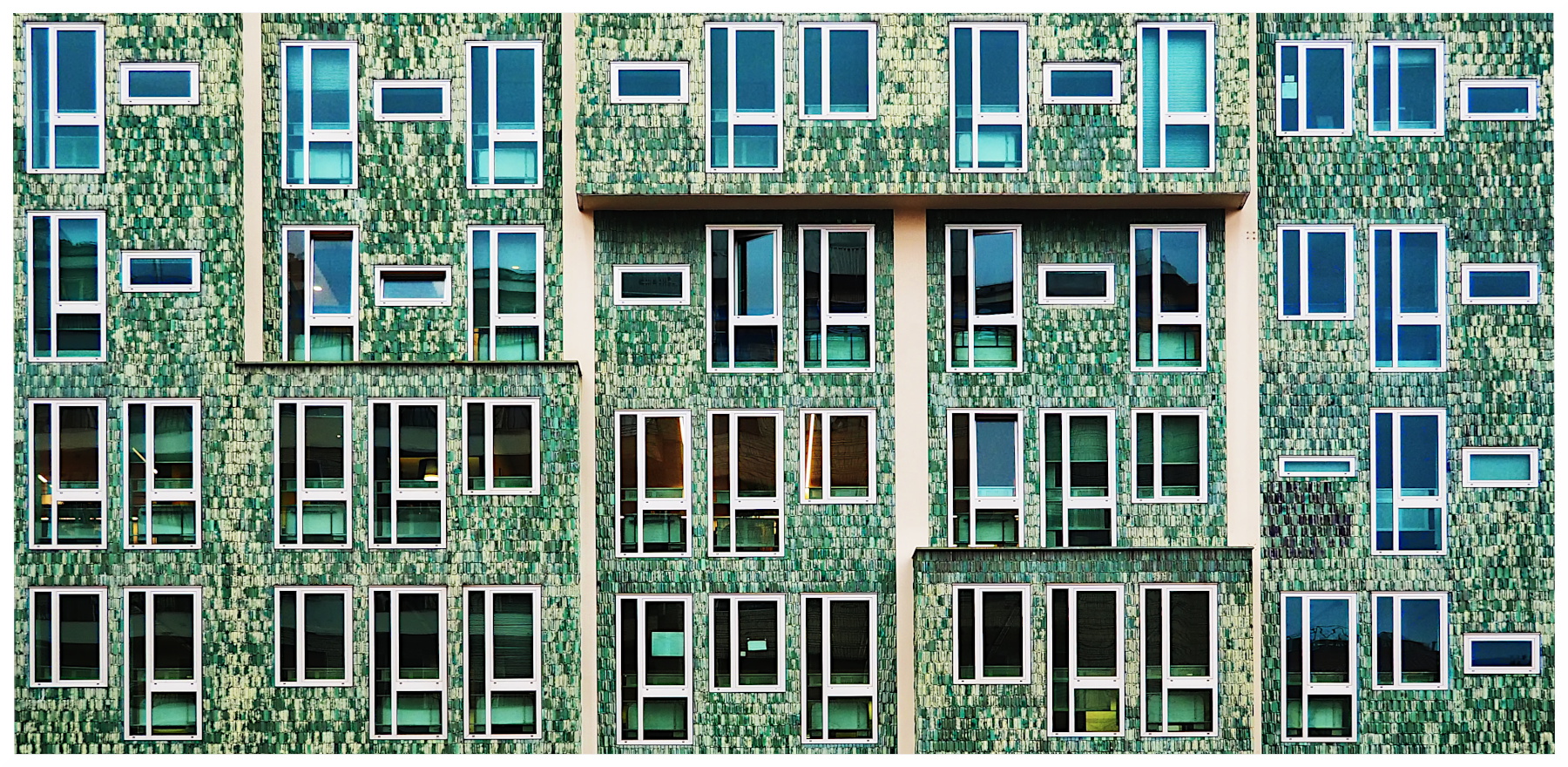 Bello il ritmo vivace e ripetitivo delle finestre.