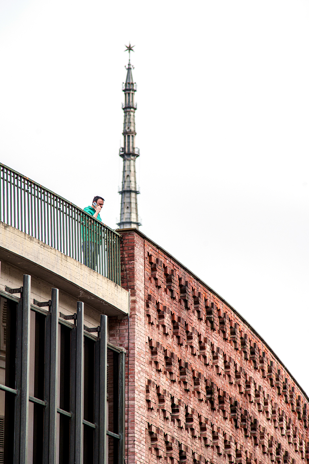Mi piace il contrasto tra la figura in verde e i mattoni della struttura.