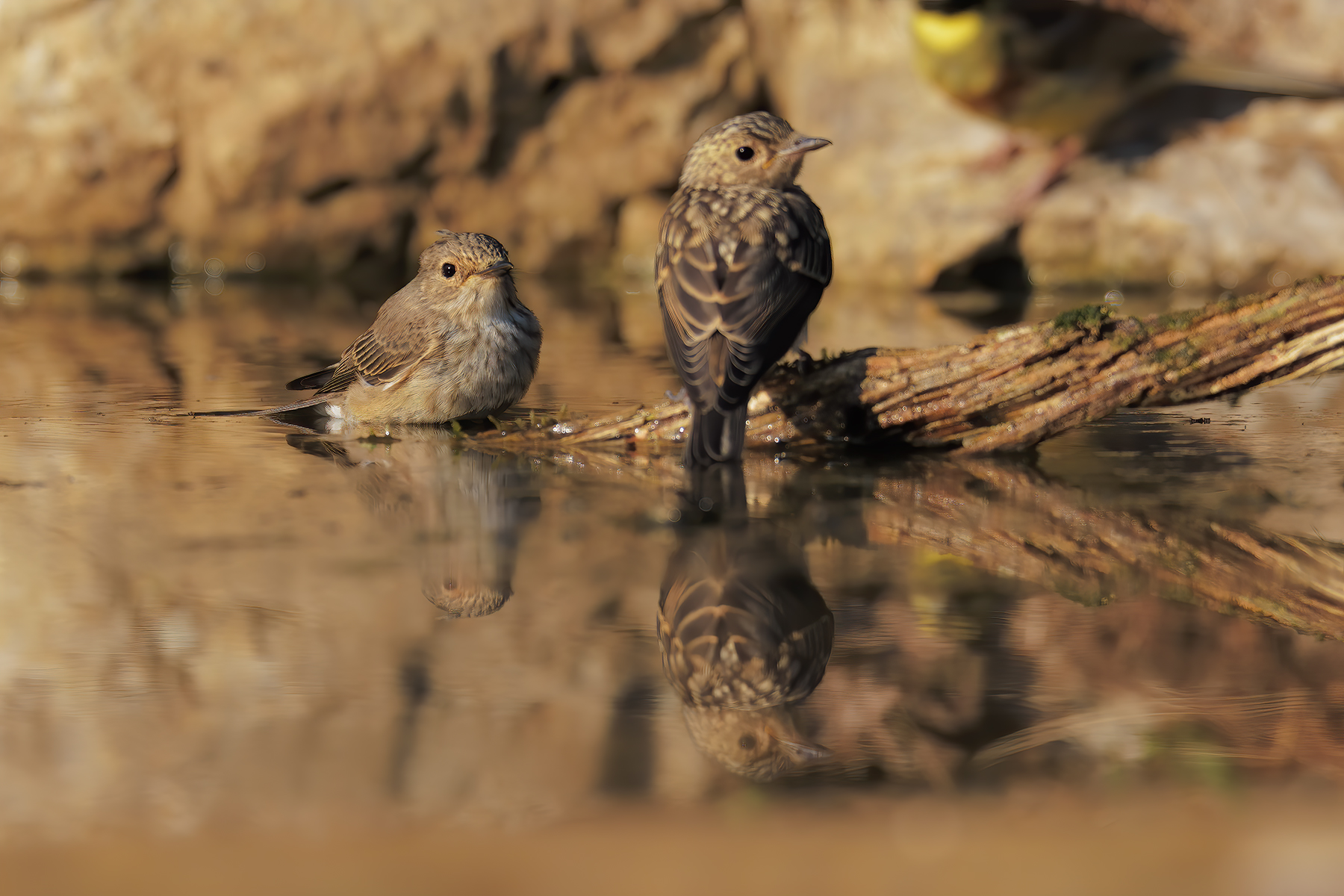 In questo caso, abituati a leggere da sx a dx, si incontra prima il soggetto più lontano a fuoco, poi seguendo verso destra il secondo soggetto e i ramo in acqua che sale, seguendo uno sfocato continuo. e l'occhio va.