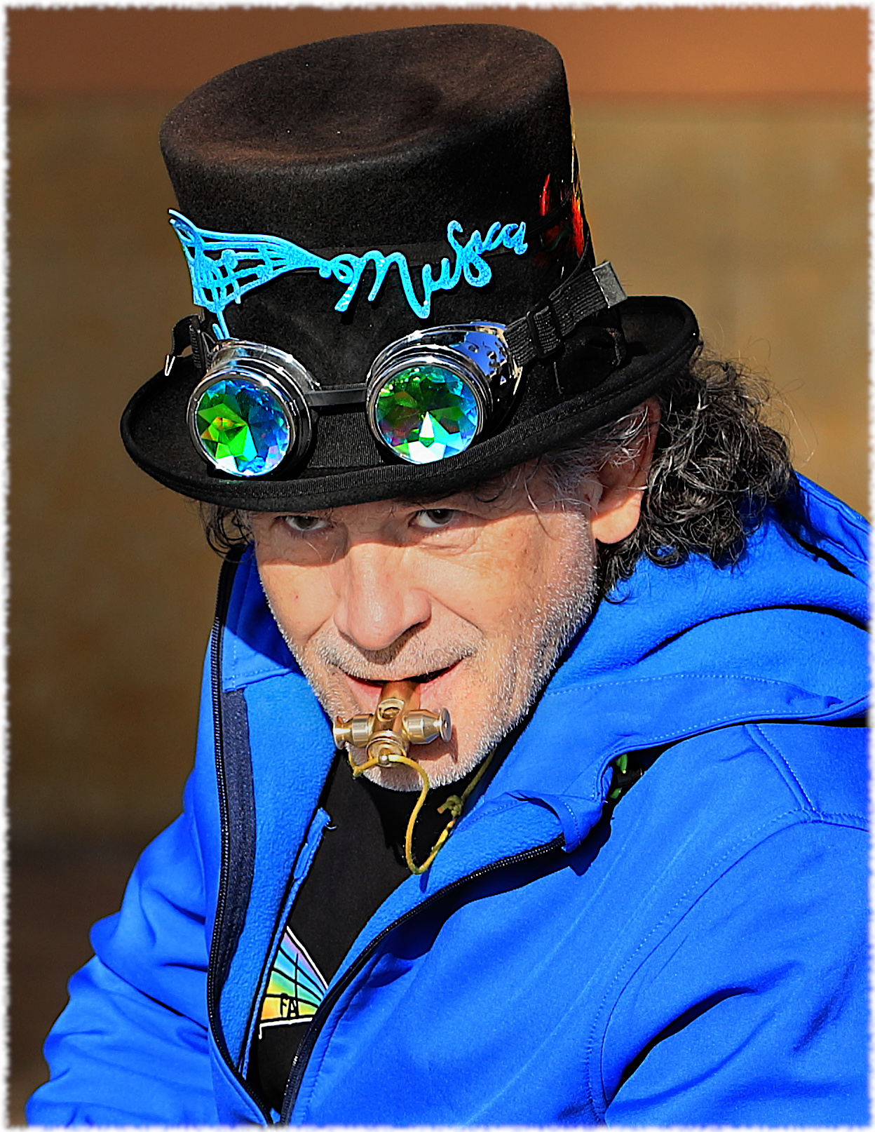Lo scatto è abbastanza interessante. Il volto è molto espressivo e lo strumento in bocca rappresenta un elemento che ci parla di lui.