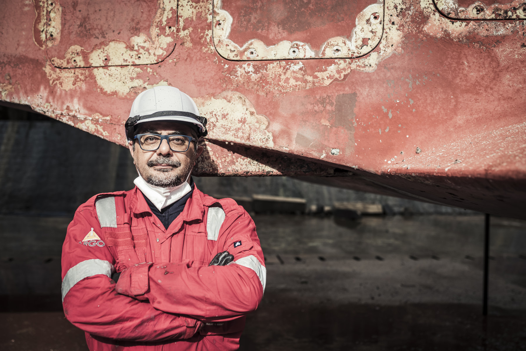 Interessante lo sguardo di Daniele che ci/mi racconta la fierezza del suo lavoro, così come gli indumenti ci parlano della sua attività lavorativa.