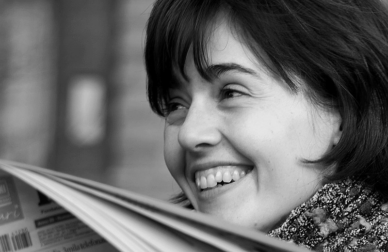 Mi piace molto, hai colto una bellissima espressione, un sorriso spontaneo. Il BN forse poteva essere un po' più contrastato. Il mento tagliato dal giornale non è il massimo ma rende la foto più genuina. _________________
