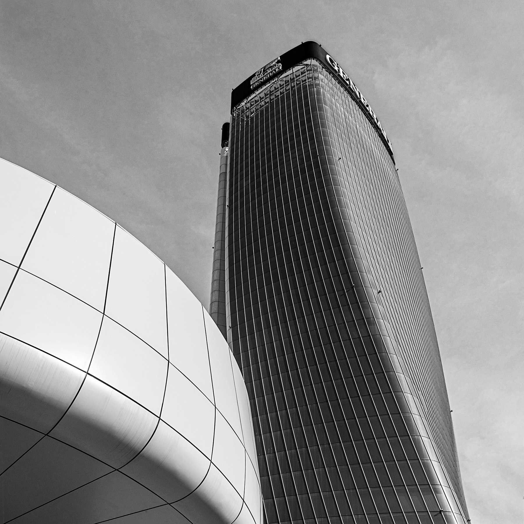 Questa inquadratura nella italica capitale della modernità è efficace e quasi minimale. La scelta del biancoenero è coerente con il taglio dell'immagine. Il cielo risulta un poco 'brufoloso', ma appare quasi come fosse volutamente pennellato. Bella proposta. Ciao, Francesco _________________ Fotocamere Olympus OMD e PEN, Panasonic G3. Software GIMP