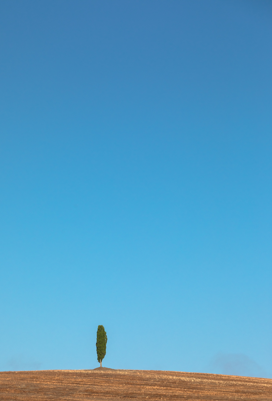 Un proposta davvero minimal (forse un pochino troppo) per questo solitario cipresso. Forse un pochino meno cielo ci stava, ma comunque interessante.