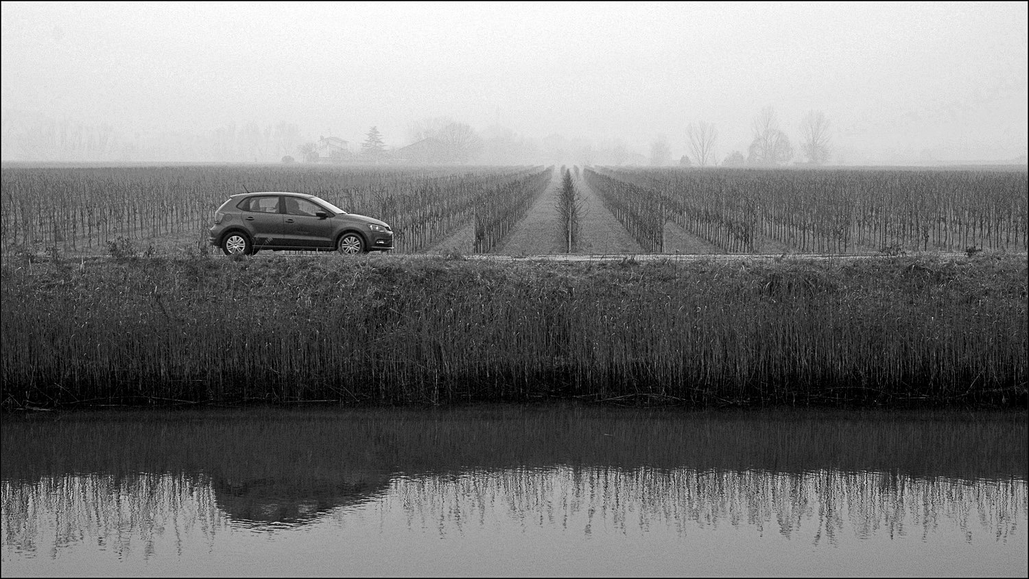 I riflessi sull'acqua, la macchina opportunamente decentrata, i piani che si susseguono in modo ordinato con la lunga e suggestiva prospettiva, l'evanescente sfondo; sono tutti elementi che me lo fanno apprezzare.