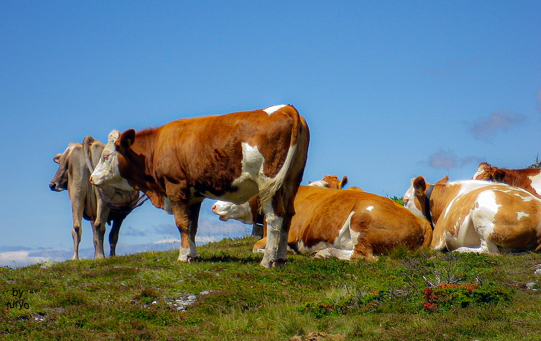 L'ambiente e l'atmosfera sono di piacevolissimo relax montano. Purtroppo le vacche sono un po' troppo sovrapposte, ma capisco che si riprende in questi casi quel che si riesce. In ogni caso la si guarda con benessere. Ciao, Francesco _________________ Fotocamere Olympus OMD e PEN, Panasonic G3. Software GIMP