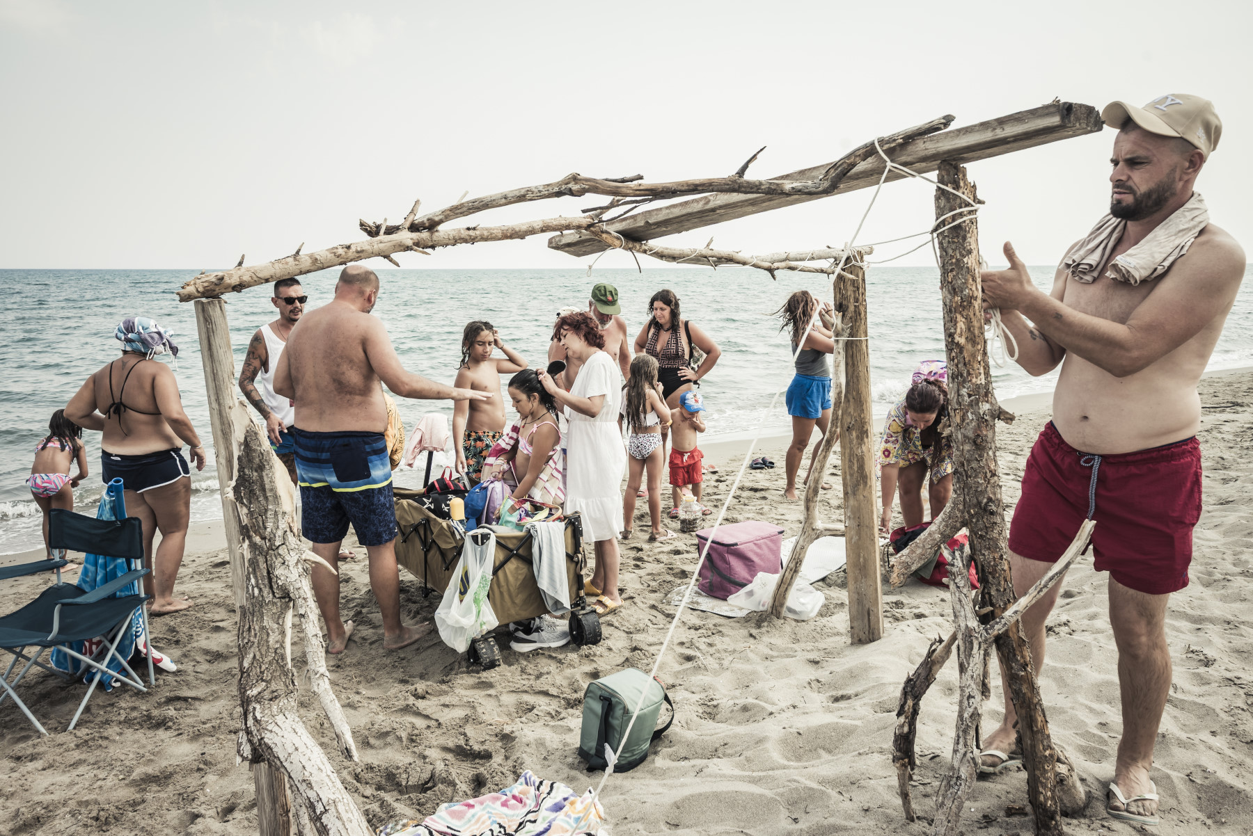 È un racconto documento dell'estate di spiaggia, caldo di temperatura e fresco di spontaneità. Sempre coerenti i tuoi colori quasi desaturati e simpatico il momento colto nell'azione di primitiva architettura. Ciao, Francesco