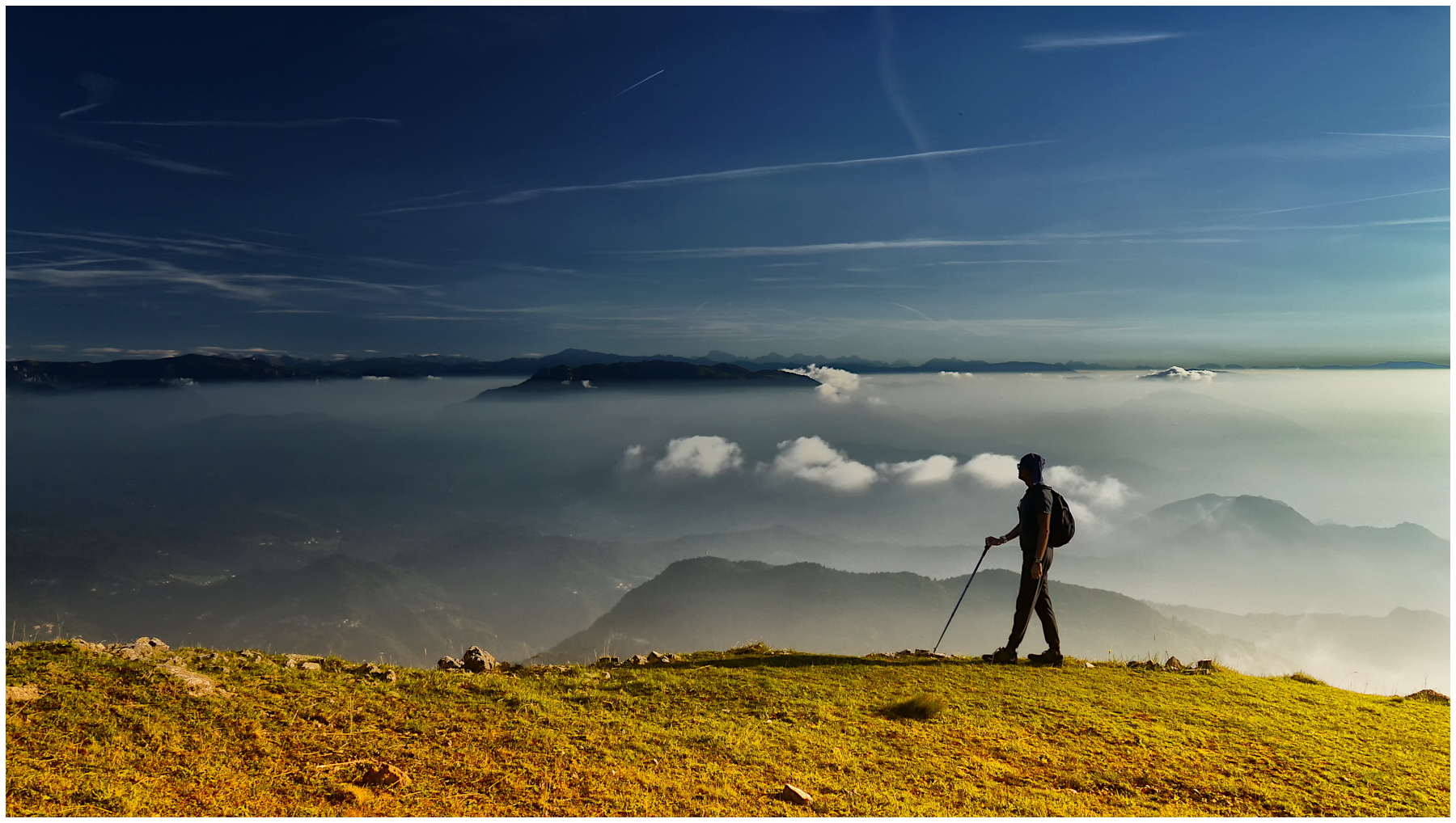 | È un'immagine che parla di solitudine, ma non in senso negativo piuttosto, suggerisce un senso di connessione profonda con la natura. Sembra che tu abbia raggiunto non solo la cima della montagna, ma anche un momento di profonda riflessione. Ciao Gianni. |