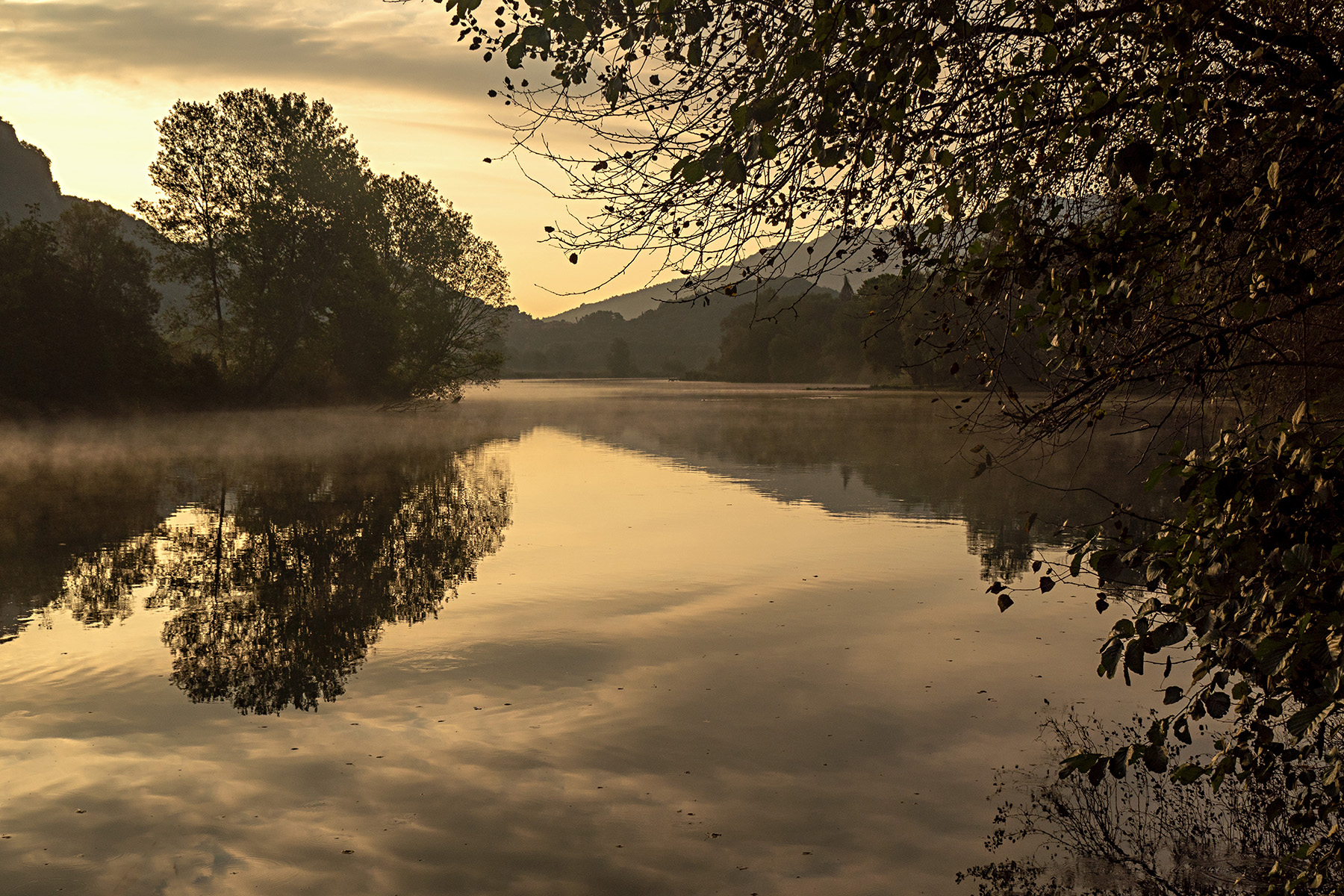 C'è l'atmosfera, ma anche una gradevole composizione giocata tra il profilo delle colline, il loro riflesso e gli alberi.