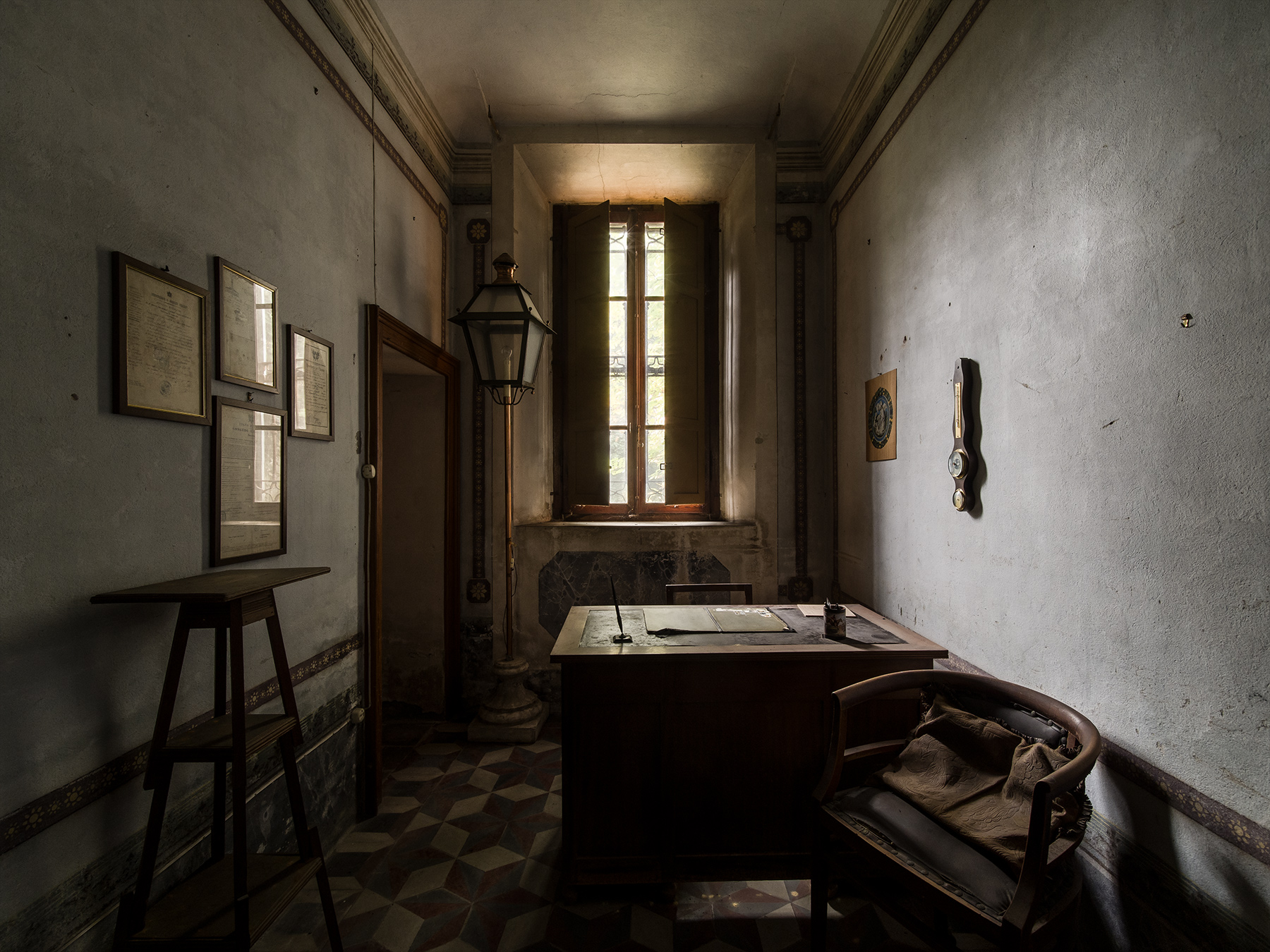 Trovo sorprendente, in molti dei luoghi che hai fotografato, che tutto o quasi sia come congelato in un brevissimo spazio tempo, la penna sullo scrittoio è l'esempio più lampante.