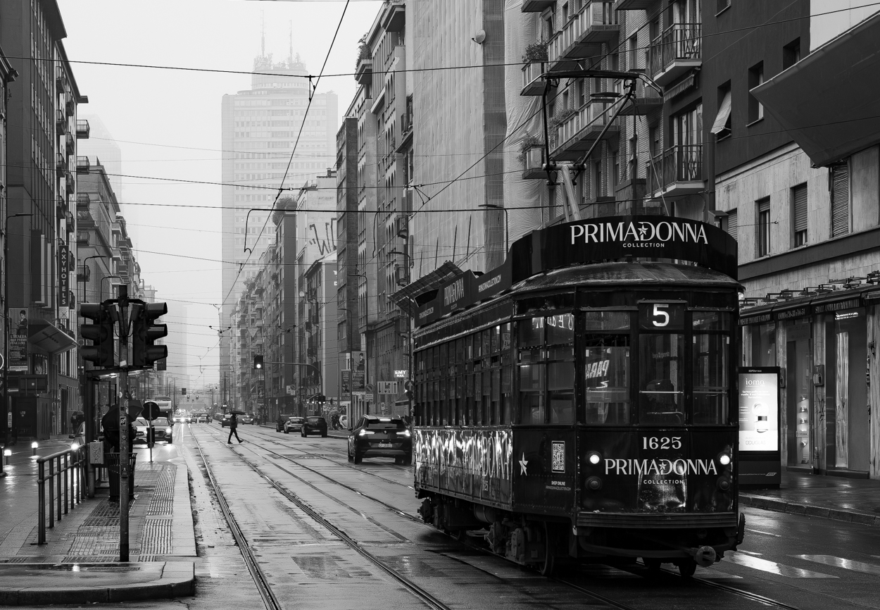 Il tram è ben inserito all'interno del frame e lo scatto gode di un buon equilibrio.