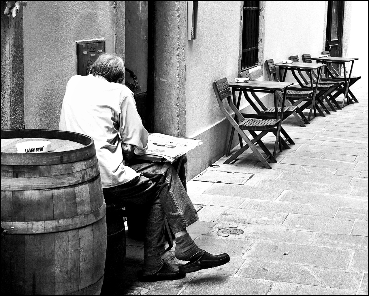 Fulcro dell'immagine l'uomo che legge il giornale che trasmette un senso di solitudine.