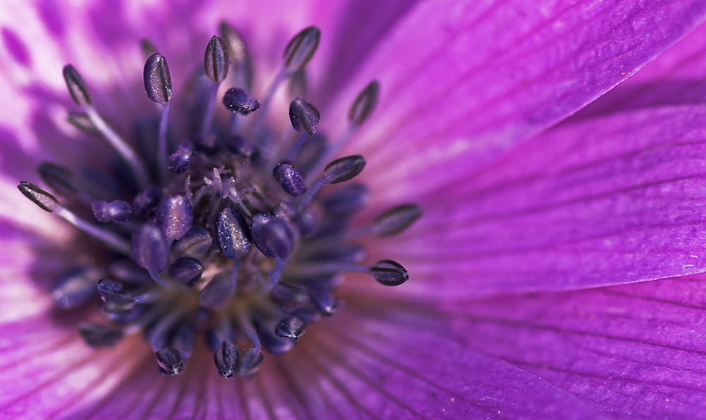 Bello il senso quasi di astrazione che questa macro spinta suscita in chi osserva: sembra di vedere come dei chicchi di caffè galleggiare in un'aria colorata di viola..