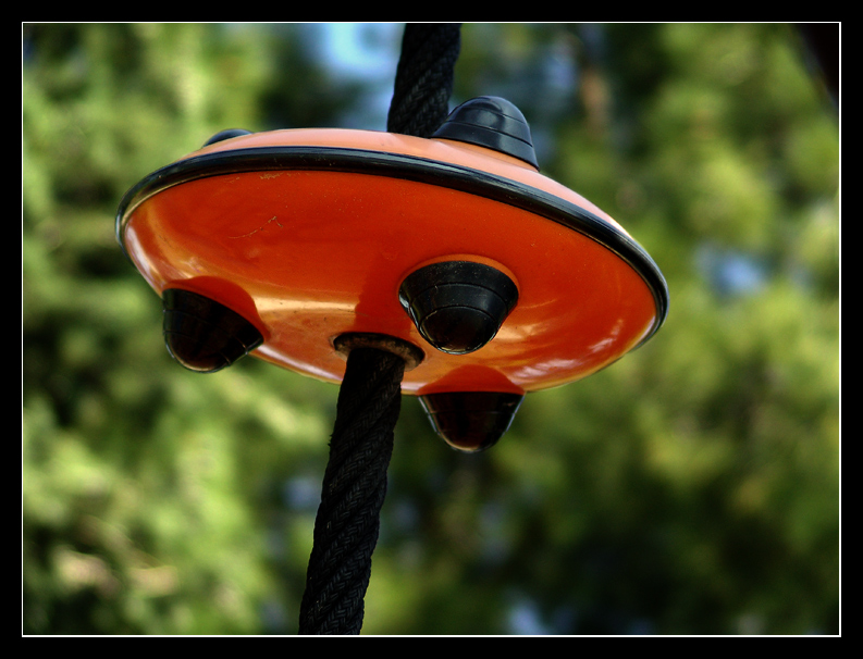 Un bel disco volante rosso impigliato in una corda, buona resa e composizione, ma non mi fa impazzire il soggetto, l'atra secondo me aveva una marcia in più. Questa è più "terrena", complice anche lo sfondo di alberi che ci fa meno "sognare lo spazio".