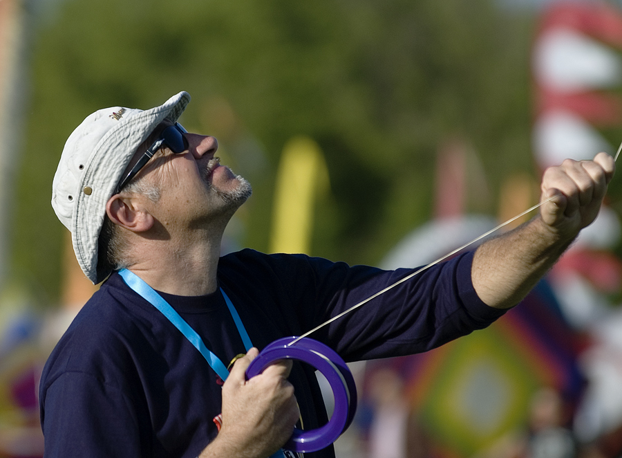 La foto è buona, è un bel ritratto, e credo che sarebbe stata piacevole anche senza sapere che si trattava di maneggiare un aquilone: l'unico neo (tecnico) è che la composizione e l'atteggiamento portano il nostro sguardo sulle mani, ovvero verso l'azione dell'uomo: e le mani non sono nè ferme nè a fuoco, insomma non nitide quanto il volto Wink