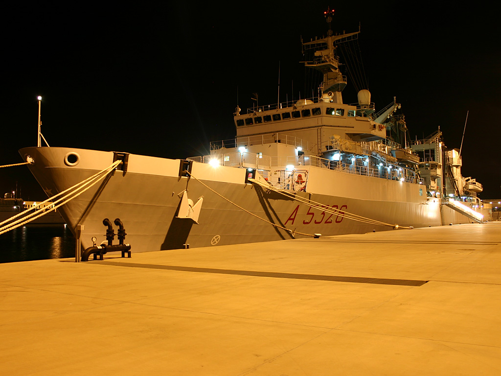 Nave della Marina Militare Italiana al molo militare, prima della partenza notturna