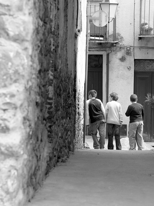 mmm...vediamo un po' allora..forse il taglio poteva essere orizzontale ma a destra c'erano parecchi elementi di disturbo..per il muro che dire? sta lì perchè mi piaceva dare profondità alla scena attraverso un elemento architettonico che potesse evidenziare la prospettiva