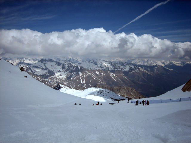 | La neve sembra sorridere al panorama che si può ammirare dal ghiacciaio |