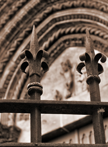 Se non leggessi il titolo difficilmente riuscirei a dare una collocazione ed un ordine agli elementi presenti, anche se, pur avendo il titolo che fa da guida, le due punte minacciose in primo piano fanno pensare proprio poco a "pace a te".