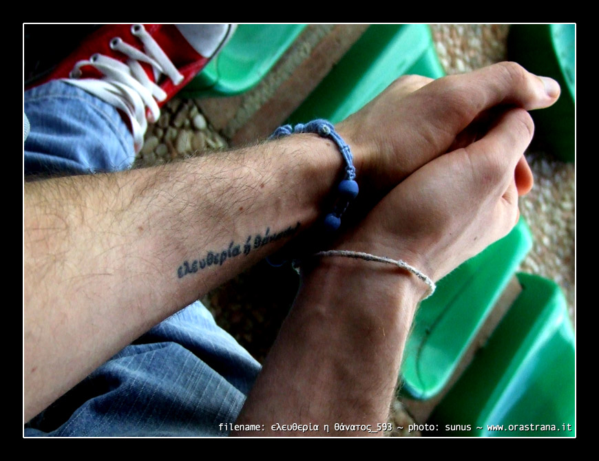 E' possibile che se lo scatto si chiama "libertà o morte", questo sia anche il significato del tatuaggio..