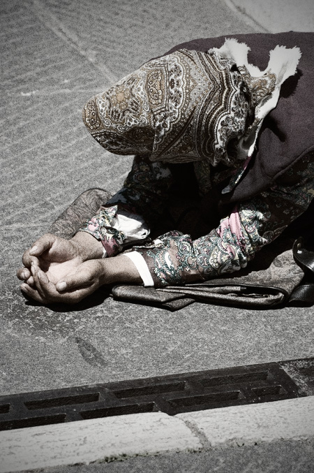 Mi spiego meglio: la precisione dello scatto è tale che, almeno a me, comunica una certa freddezza, peraltro confermata dalle scelte cromatiche. Sommando questo al fatto che la tipologia di soggetto, il/la mendicante, è così sfruttato, e così' difficile da rendere in maniera originale, si ottiene una impressione che almeno a me non appare molto piacevole.