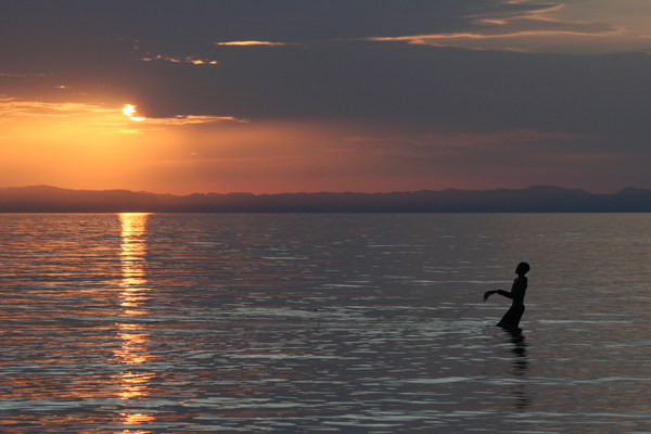 La foto è bella ma c'è qualcosa che non va. Cosa? Il soggetto......si perde! E' troppo piccolo. In questo scatto hai fotografato tanto il tramonto quanto il pescatore. Sarebbe stata meglio una foto del pescatore al tramonto.....non so se rendo l'idea....oppure una foto al tramonto con l'africano che defilato pescava.
