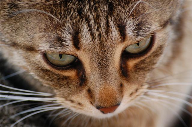 Bel gattino, sicuramente se la fai vedere al gattino penso non sarà contento che le ai taglito i baffi........... scherzo cmq bella foto.  |