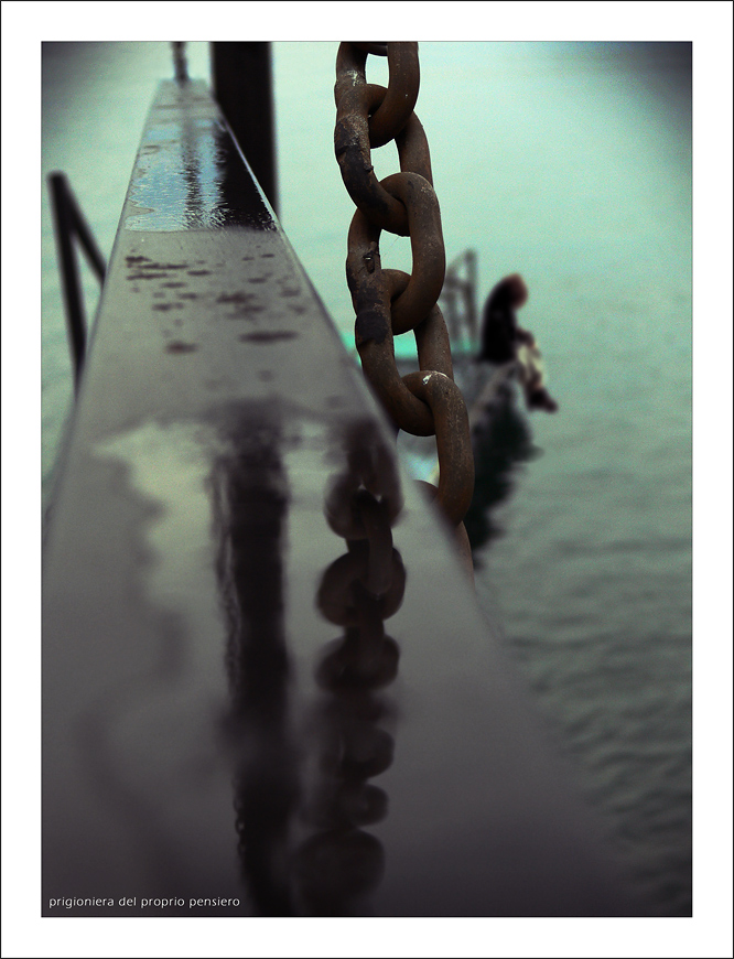 un'immagine che mi piace molto! La catena e l'enorme trave che sovrastano la piccola figura immersa nei suoi pensieri? Potrebbe essere lì per qualsiasi motivo anche piu' drammatico ed il messaggio non cambierebbe!  _________________ ° Vittorio ° www.photovictor.it