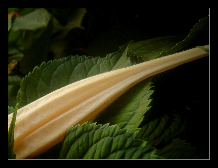 ..grazie !..in realtà c'è una corrispondente fogliolina anche all'estremo opposto: come se trattenessero delicatamente il fiore sul letto di foglie d'ortensia. Notato questo compresenza ho deciso di non apportare alcun taglio alla foto.