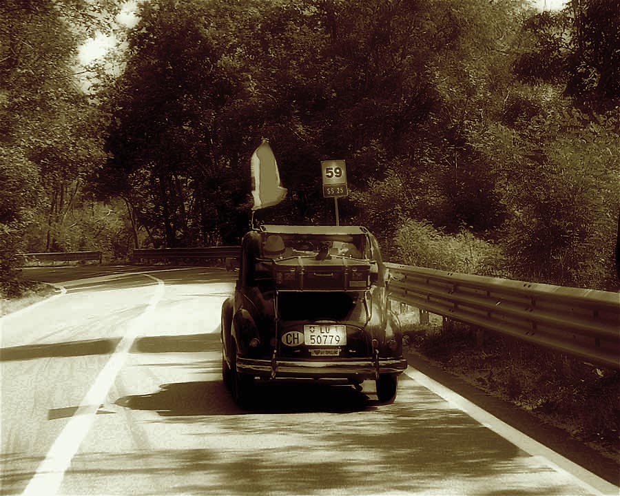 una vecchia topolino torna a casa dopo il raduno del Moncenisio...