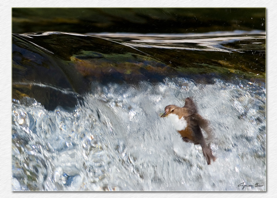 Un tuffo nell'acqua tumultuosa della cascata per rientrare nel nido sottostante con l'imbeccata.