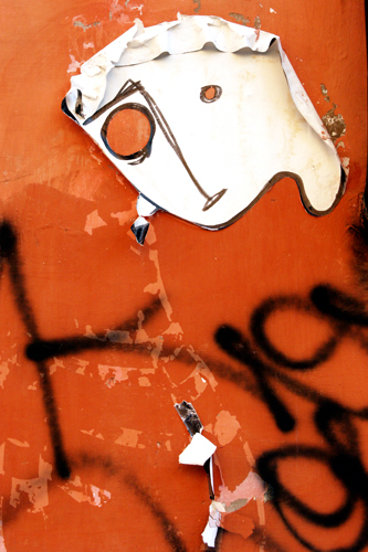 Per carità, nessuna intenzione di prendermi il merito di colui che in un vicolo di trastevere, con due colpi di pennarello e qualche sforbiciata, ha creato un'immagine sintetica e al tempo stesso estremamente espressiva. Non ho fatto altro che ritrarla.