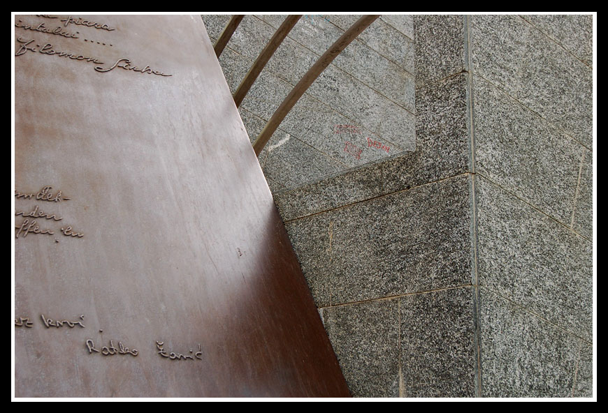 secondo me, l'idea cìè ma maca un pochino di realizzazione. Avrei, per quanto mi riguarda, cercato di rendere il tutto piu' simetrico, raddrizzando prima di tutto l'angolo del muro. Avrei fatto anche una ripresa piu' ampia per non tagliare le firme ed avrei cercfato di regolare l'esposizione in maniera da rendere il tutto piu' tridimensionale cercando, magari di giocare di piu' con l'angolazione, le luci e le ombre!  _________________ ° Vittorio ° www.photovictor.it