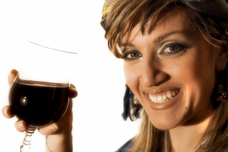 Come dice iaboni, io toglierei l'illuminazione del flash dal calice con photoshop, in più farei tenere il calice in un modo diverso alla modella.