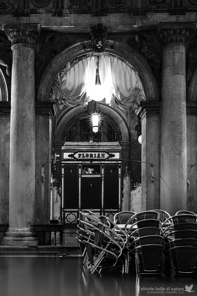 San Marco. Una distesa d'acqua. Decine di fotografi (troppi, per le nostre speranze, pochi, in senso assoluto), qualche decina dai, intenti a vario titolo nel catturare attimi di quella serata spettrale e speciale. L'acqua sta già scendendo, rispetto a poco fa, ma siamo sempre ben sopra al ginocchio, lo stivale ancora si può difendere. Un tavolino emerge in centro alla piazza come superstite di una serata che scrive un pezzo di storia. Di Venezia, e di noi.