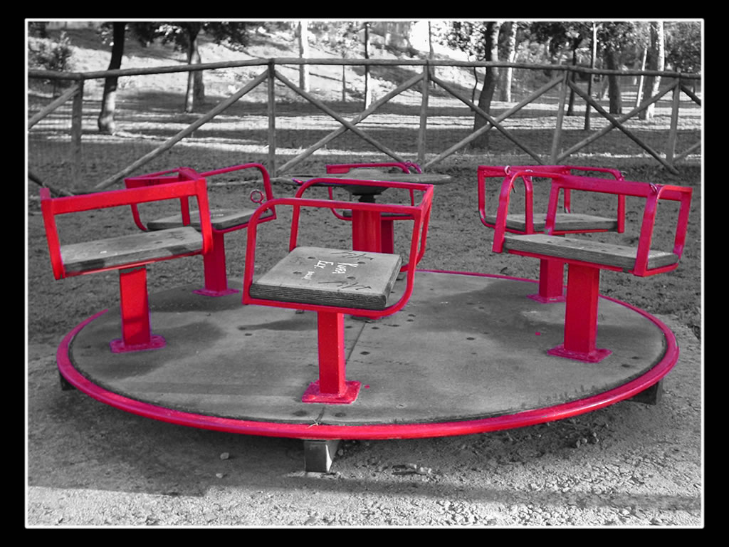 Spero di azzeccare la sezione (Postwork) in quanto la foto è stata virata tutta in b/n ad eccezione della giostra che ho lasciato con la colorazione naturale. Software utilizzato Macromedia Fireworks.